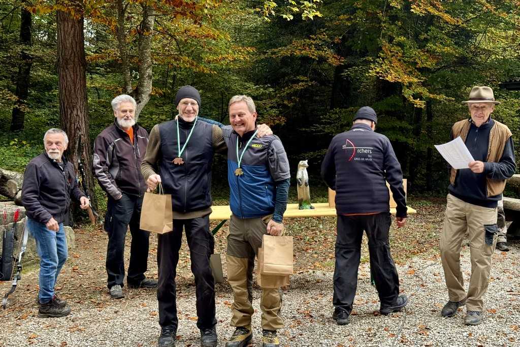 Deux archers de l’AGdV sont montées sur une marche du podium: